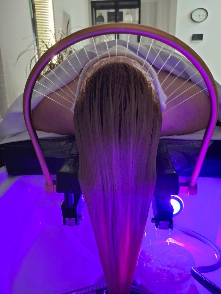 Uz šamponiranje kombinirano s masažom vrata, dolazi do potpunog opuštanja, a potom nanosimo hranjivu masku za kosu uz ugodnu masažu ramenog pojasa. Tretman završavamo ispiranjem kose bakrenim nastavkom za dodatni osjećaj svježine i sterilnosti, te sušenje/feniranje kose.
